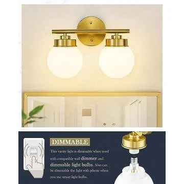 LMS Gold Bathroom Light Fixtures, 2 Light Globe Bathroom Vanity Light Fixtures with White Glass Shade, LMS-097