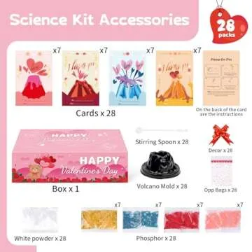LMTGLDT Valentines Day Gifts for Kids -28Pcs Volcano Science Kit,Volcano Kit with Valentines Card, Experiments Science Kits for Kids Classroom Exchange School Activities Party Favors