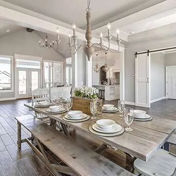 LNC French Country Chandeliers Wood 6 Lights Rust Arms for Dining, Bedroom, Living Room and Bathroom, Brown Lamp Body Size:D29.5 xH24.5