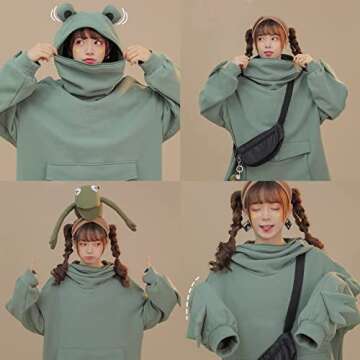 LNYSOTX Frog Hoodie Sweatshirt with Unique Zipper Mouth for Women and Teen Girls