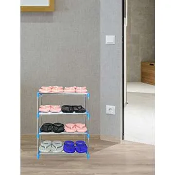 LNYZQUS Upgrade 4 Tier Small Shoe Rack, Kids Show Rack Closet Shoe Organizer,Compact Stackable Shoe Shelf Shoe Stand Floor Shoe Rack for Narrow Space,Zapateras Organizer for Shoes (Blue)