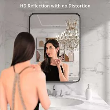 Show more Introducing the LOAAO bathroom vanity mirror, where elegance meets functionality. Crafted with precision, this mirror is designed using high-definition float glass that ensures a crystal-clear reflection without any distortion. The sleek, modern design seamlessly integrates into any décor, making it more than just a reflective surface—it becomes a statement piece in your home.