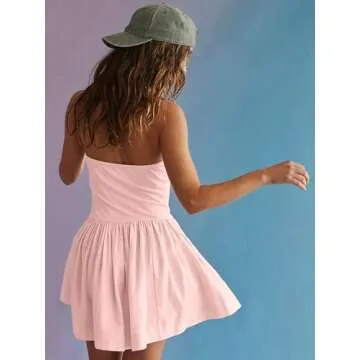 Loafawes Strapless Tube Top Dress for Women Summer Solid Dresses Hot Shot Flowy Sundresses Short Casual Dress for Beach Pale Pink