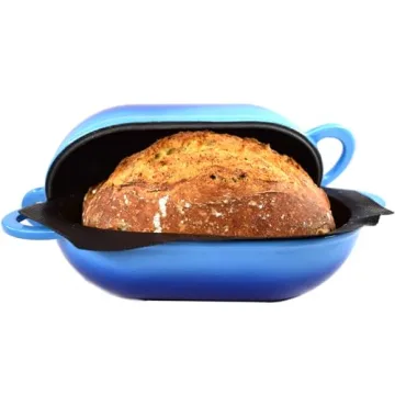 LoafNest: Incredibly Easy Artisan Bread Kit. Cast Iron Dutch Oven [Compact 2 qt size] and Perforated Non-Stick Silicone Liner.