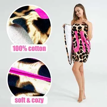 LOBETOAED Thick Beach Towel for Adults - 100% Cotton - Quick Dry Super Absorbent Sand Free Cool Beach Towel for Women, Fashion Beach Gift for Swim/Surf/Bath/Pool,with Leopard Print Parttern