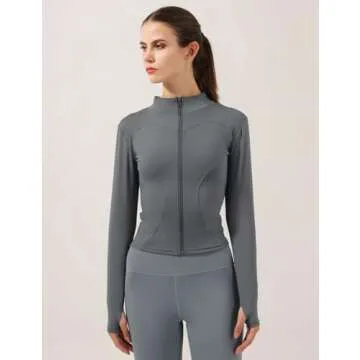 Locachy Women's Lightweight Stretchy Workout Full Zip Running Track Jacket with Thumb Holes Grey M