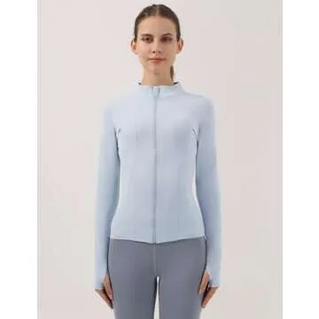 Locachy Women's Slim Fit Full Zip Athletic Running Sports Workout Jacket with Pockets Style 02 Light Blue S