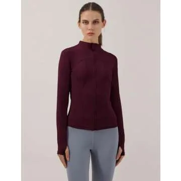 Locachy Women's Slim Fit Full Zip Athletic Running Sports Workout Jacket with Pockets Style 02 Burgundy M