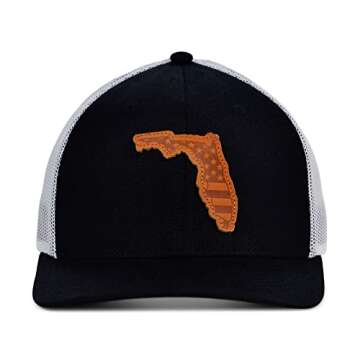 Local Crowns Florida Leather USA Flag Fill Patch Black White Trucker Cap