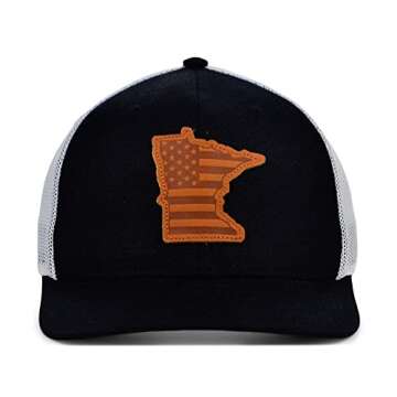 Local Crowns Minnesota Leather USA Flag Fill Patch Black White Trucker Cap