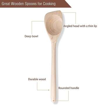 LOCDION Premium Wooden Spoons for Cooking-Maple Wood Kitchen Utensils for Serving,Stirring,Scraping,Flipping-Versatile Wood Spatula with Comfort Grip,Non-Stick Cookware Safe