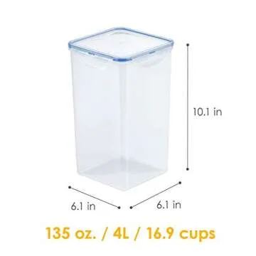 Show moreTransform your kitchen into a model of organization with the LOCK & LOCK Easy Essentials Food Storage Container. This premium, 16.9-Cup square container isn't just stylish but also exceptionally functional, catering to the needs of both amateur and seasoned chefs alike. With its unique, patented 4-hinge locking system, it ensures that your foods not only remain fresh longer, but are also protected from spills and messes. Perfectly sized for pantry staples like snacks, flour, sugar, and more, this container is a must-have for anyone looking to elevate their food storage game.