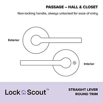 Upgrade your home with the sleek and functional Lock Scout Straight Lever with Round Trim Hall and Closet Door Handle. Finished in a contemporary matte black, this lever handle embodies modern elegance while delivering dependable performance. Its non-locking mechanism ensures ease of access, making it especially great for interior spaces such as hallways, closets, or laundry rooms. Installation is a breeze; simply grab a screwdriver and transform your doors in no time with...