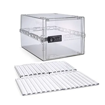 Show more Introducing the revolutionary Lockabox One™ Crystal & Shelf Pack Bundle, your go-to solution for secure storage that combines safety, functionality, and sleek design. Whether you're seeking a reliable lockable box for food, medications, or valuable belongings, the Lockabox One is crafted from durable, food-grade polycarbonate. With its patented clam-shell structure, this versatile lock box is easy to program and unlock, making it perfect for anyone wanting to protect their essentials. The included shelf pack allows for efficient organization, making this an essential product for any household.