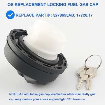 Show moreDiscover the ultimate upgrade for your vehicle’s fuel system with our Locking Gas Cap, designed for optimal compatibility with a range of Chrysler, Dodge, Jeep, and Ram models. This locking fuel cap (part number 05278655AB, 5278655AB) not only provides a secure fit for various vehicles, including the Challenger, Grand Caravan, Ram 1500, Grand Cherokee, Wrangler JK, TJ Liberty, Compass, and Patriot, but it also protects your fuel from evaporation and theft. Built with durable materials and precision engineering, this cap ensures reliability and peace of mind.
