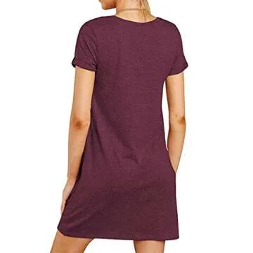 Locryz Short Sleeve V Neck Tunic Dress for Women Cute Side Knot Summer Dresses L Wine Red