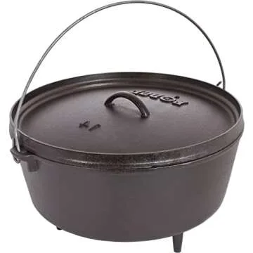 Show moreIntroducing the Lodge 5 Quart Pre-Seasoned Cast Iron Camp Dutch Oven – a quintessential piece of camping kitchenware engineered for both outdoor and at-home cooking enthusiasts. Ready to use right out of the box, this versatile cooker combines durability and design, making it a favorite among campers and chefs alike. The seasoned cast iron construction ensures even heating, so every meal – whether it’s a hearty stew or a perfect cornbread – is cooked to perfection. Designed with an impressive 10-inch diameter and a depth of 5 inches, it comfortably accommodates a variety of meals for family and friends. Plus, its cast iron lid conveniently inverts for use as a griddle, allowing for greater versatility in your cooking options. Experience the art of cooking with time-tested craftsmanship, as this dutch oven is proudly made in the U.S.A.