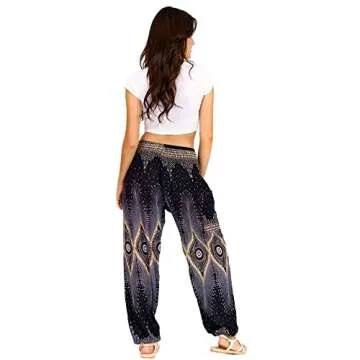 Show moreStep into a world of comfort and style with the LOFBAZ Harem Pants, designed for the modern woman who values both fashion and functionality. Crafted from 100% soft lightweight Rayon, these pants offer a flowy wide-leg fit that not only enhances your silhouette but also ensures comfort throughout the day. Whether you're practicing yoga, lounging at home, or heading out to the beach, these pants are your perfect companion. The smocked elastic high waist flows seamlessly into a flattering design that accommodates all body types, thoughtfully designed to flatter and smooth out the tummy area. Enjoy the stunning elegance of unique prints showcasing cute elephants, vibrant peacocks, and beautiful florals – perfect for making a style statement on any occasion.
