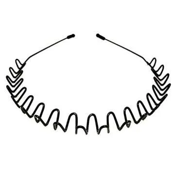 lofuanna Metal Hair Bands for Men Women's Headbands Beauty Care, Unisex Black Wavy Spring Sports for Men's Hair Band Hoop Clips Women Accessories Simple Elastic Non Slip Wide Headwear (1 pack)