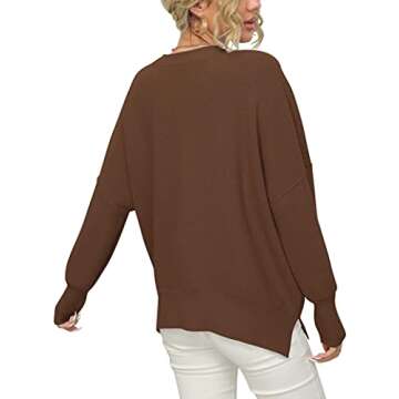 Show more Introducing the LOGENE Women's Oversized Crewneck Batwing Long Sleeve Side Slit Ribbed Knit Pullover Sweater Tops - a must-have for every modern woman's wardrobe! This fashion-forward sweater boasts a chic batwing sleeve design that offers both style and comfort, ensuring you look fabulous without sacrificing ease of wear. Crafted from a high-quality, stretchy knit material, this oversized pullover infuses an enticing blend of softness and cozy warmth, perfect for year-round layering. The elegant crewneck and drop shoulder silhouette provide a relaxed fit, ideal for a variety of occasions, whether you're heading out for brunch or cozying up at home.