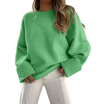 LOGENE Women's Oversized Sweater Crewneck Long Sleeve Soft Fuzzy Knit Pullover Sweaters 2024 Winter Fashion Warm Tops Clothes Lake Green X-Large