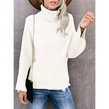 LOGENE Women's Turtleneck Batwing Sleeve Pullover Sweater - Stylish and Comfortable Knit Jumper
