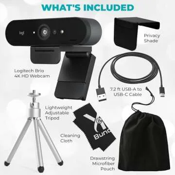 Logitech Brio 4K HD Webcam with Microphone for Desktop with Tripod & Universal Mount - USB Computer Camera - Ultra Pro Wide Angle Webcam Streaming for Meetings & Gaming