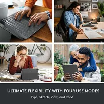 This product also offers incredible versatility with four distinct use modes: Type, Read, Sketch, and View. This adaptability ensures that no matter the task—be it drafting emails, sketching ideas, or enjoying videos—you can shift seamlessly between modes.
