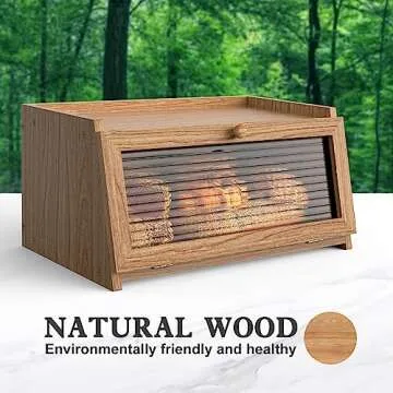 Show moreIntroducing the LOHASOK Bread Box for Kitchen Countertop, a perfect blend of functionality and aesthetic appeal. Crafted from premium eco-friendly wood, this sturdy bread box is designed to complement your kitchen decor while ensuring the safety and health of your food. Measuring an impressive 15.84 x 9.84 x 7.87 inches, it offers ample storage space for various sizes of bread, making it the ideal solution for all your baking needs. The sleek frosted acrylic glass window elegantly showcases your baked goods, keeping them fresh while adding a touch of style to your countertop. Its easy-to-clean design and smooth-opening hinged lid guarantee that accessibility and convenience are prioritized, making your kitchen experience more enjoyable.