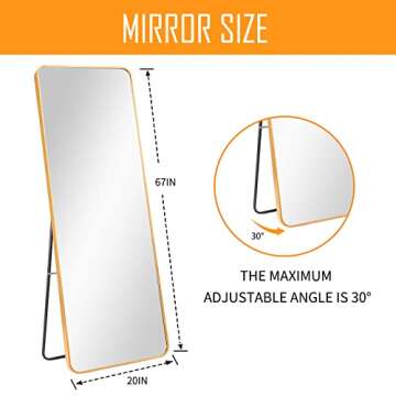 Introducing the **LOIGYUR Full Length Floor Mirror**, a stunning addition to any home that combines elegance and functionality. Measuring an impressive **67 x 20 inches**, this mirror not only provides a perfect full-length view but also enhances your space visually, making any room feel larger and more inviting. Crafted with a durable **aluminum alloy frame**, this mirror features advanced oxidation coloring technology ensuring that the beautiful **gold or black finish** remains vibrant, even in humid environments....