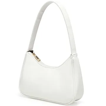 Loiral Shoulder Bags for Women, Cute Hobo Tote Leather Handbag Mini Clutch Purse with Zipper Closure, White