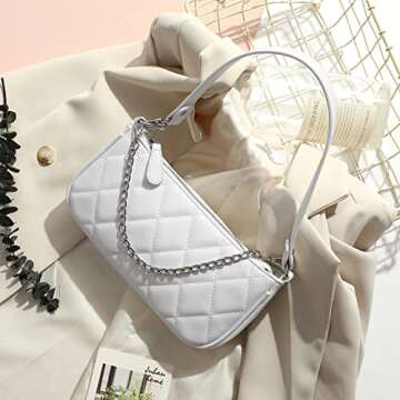 Loiral Small Purse for Women - Retro Classic Tote Handbag Mini Shoulder Bag, Quilted Clutch with Zipper Closure, White