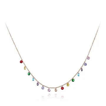 Show moreIntroducing the stunning Lokaerlry Trendy Boho Stainless Steel Colorful CZ Crystal Rainbow Choker Necklace, a truly exquisite addition to any jewelry collection. Designed with elegance in mind, this necklace features a delicate link chain that is both stylish and comfortable to wear. Crafted from high-quality rose gold plated stainless steel, this piece boasts 15 sparkling cubic zirconia (CZ) stones, renowned for their durability and brilliance. Our unique rainbow color design brings a vibrant pop to your everyday outfits, making it ideal for both casual and formal occasions. With dimensions of 5 mm for the pendant and a versatile chain length of 40+5 cm, this necklace sits beautifully on the neckline, complementing any style effortlessly.
