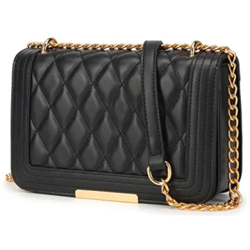 Crafted from high-quality quilted faux leather, this handbag features a smooth, soft finish that exudes luxury. It showcases a well-constructed design with a strong magnet button for easy access. With a beautiful black and gold finish, it's not just a bag; it’s a statement piece that enhances any outfit. The spacious interior is cleverly designed to hold all your essentials – from plus-size cell phones to wallets, keys, and even personal items like passports and tickets. At a convenient size of 9” x 3” x 5.75”, it's perfect for daily use without compromising on style.