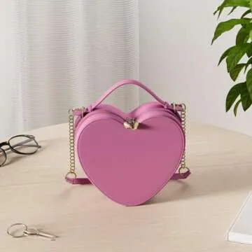 lola mae Heart Shape Satchel Crossbody Purse for women Zip Around Shoulder Bag (Hot pink-759)