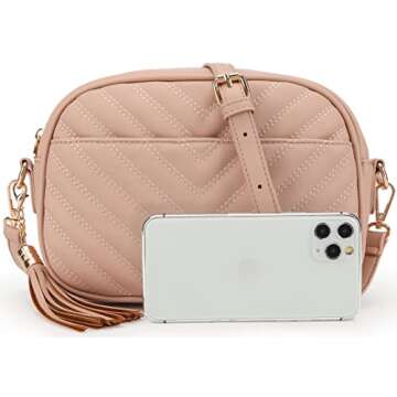 lola mae Quilted Crossbody Bag, Medium Lightweight Shoulder Purse Top Zipper Tassel Accent Blush Bag (BLUSH LM706V)