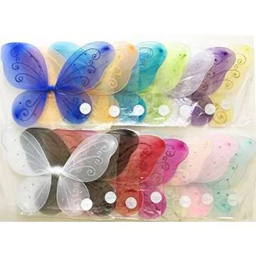Show moreTransform playtime into a magical adventure with the LOLASATURDAYS Fairy Wings, the ultimate accessory for any young dreamer! Measuring 22" x 15", these stunning wings are perfectly designed for children aged 3 to 12 years. Crafted from soft nylon fabric, they feature enchanting glitter and rhinestone accents that catch the light beautifully, creating a mesmerizing effect for any fairy costume. The sturdy wire frame allows for easy adjustment of the wings' angles, ensuring they maintain a lovely shape while your little one flutters and twirls. With four pairs offered in every pack, ready to share the magic is even easier!