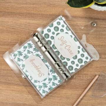 Show moreDiscover the perfect blend of practicality and style with the Lollipro Budget Binder. This compact and chic 6 Ring Small A6 Binder measures a portable 7.68 x 4.8 inches, making it the ideal companion for all your budgeting needs, whether you're at home, in the office, or on the go. Designed to easily fit into your handbag, backpack, or suitcase, it offers convenience without compromising on function or flair. The binder features a waterproof clear soft-touch PVC cover, ensuring your money organization is protected from spills and mishaps while looking effortlessly stylish.