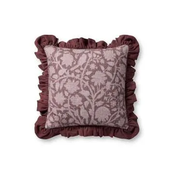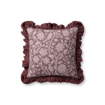 Show moreIntroducing the stunning Plum Purple Floral Throw Pillow from the renowned Chris Loves Julia x Loloi collaboration! This exquisite pillow, designed with care, features a luxurious two-toned plum purple fabric intertwined with a charming botanical and bird pattern. The unique ruffled edges add a touch of romance and classic beauty, giving your space a warm, inviting ambiance. Measuring at a convenient 18” x 18”, this decorative throw pillow is ideal for bringing style and comfort to your living room, bedroom, or any seating area in your home. Made from 100% soft cotton, it promises to be a cozy addition to your decor while providing a durable and long-lasting finish.