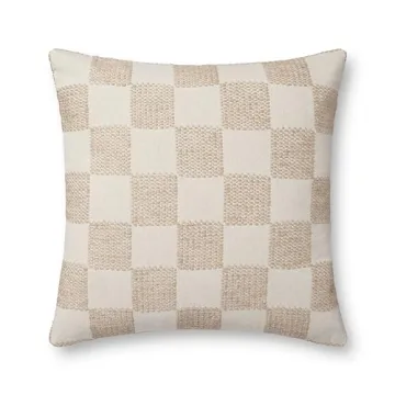 Show moreTransform your living space with the exquisite LOLOI PLL0123 Beige 22'' x 22'' Cover Only Pillow, designed by the renowned textile innovator, Loloi. This beautiful throw pillow features a stunning beige-and-ivory checkerboard pattern that introduces a touch of modern sophistication to any room. The muted tones are crafted to blend seamlessly with your existing decor, making it the perfect accent piece for bedrooms or living areas. Made from a harmonious blend of cotton, polyester, and rayon, this pillow combines durability with a soft touch, ensuring that it not only looks good but feels good too. Measuring 22” x 22”, it fits comfortably on standard-sized pillows, providing ample support while enhancing your space with its chic design.