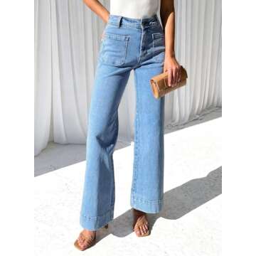 LOLONG Women's High Waisted Flare Jeans - Stylish Light Blue Denim Pants