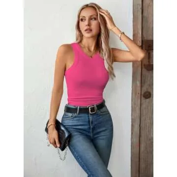 LOLONG Womens Stretch Tank Top Summer Ribbed Sleeveless Shirts Hot Pink