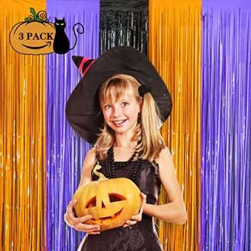 Show moreTransform your Halloween festivities with the **LOLStar 3 Pack Orange Purple Black Foil Fringe Curtains**! Measuring a generous 3.3 x 6.6 feet each, these tinsel curtains are perfect for setting the scene at your Halloween party, Thanksgiving gatherings, or any exciting celebration. Crafted from durable tinsel material, these curtains not only look stunning but are also built to last, making them a fantastic addition to your party arsenal. Their radiant colors of orange, purple, and black evoke the vibrant spirit of the spooky season while adding a touch of elegance to your décor.