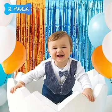 LOLStar Blue Dog Party Decorations - 2 Packs of 3.3x6.6 ft Orange and Light Blue Foil Fringe Curtains for Birthday Party Supplies, Blue Foil Tinsel Photo Booth Prop Backdrop
