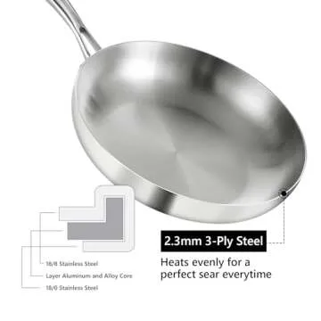 LOLYKITCH 12 Inch Tri-Ply Stainless Steel Frying Pan,Skillet,Induction Cooking Pan,Dishwasher and Oven Safe,Heavy Duty and Detachable Handle.