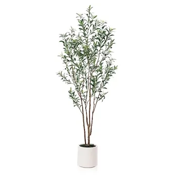 Transform Your Space with LOMANTO Artificial Olive Tree, 7 ft Tall Faux Plant for Home Decor