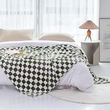 LOMAO Throw Blankets Flannel Blanket with Checkerboard Grid Pattern Soft Throw Blanket for Couch, Bed, Sofa Luxurious Warm and Cozy for All Seasons (Dark Olive, 50"x60")