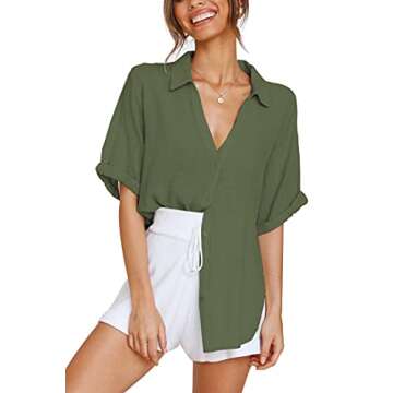 LOMON Women's Button Down Shirts - Stylish Green Blouse
