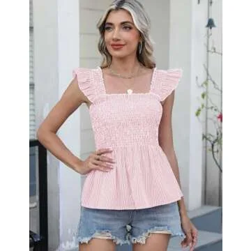 Show moreIntroducing the LOMON Womens Tank Tops, perfect for your summer wardrobe! These casual sleeveless shirts elevate your style with their charming ruffle flying sleeves and square neck design. Made from high-quality, breathable fabric, these tops offer a comfortable fit while being lightweight enough to keep you cool during warmer months. With multiple options available in chic patterns like plaid, stripe, floral, and solid colors, you're sure to find the ideal match for any outfit. The elegant smocked details enhance the square neckline, giving it a unique touch that sets it apart from typical tank tops.
