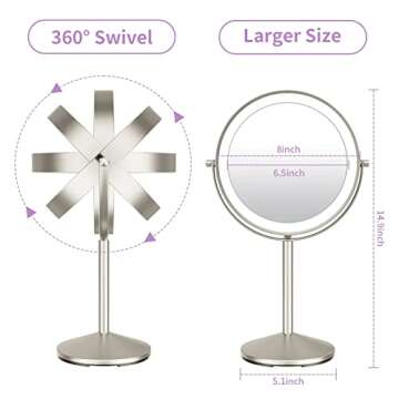 LOMRECS Vanity Mirror with Lights, 1X/10X Magnifying Makeup 8 Inch Rechargeable Double Sided Lighted Mirror, Dimmable Led 3 Color Lighting Modes